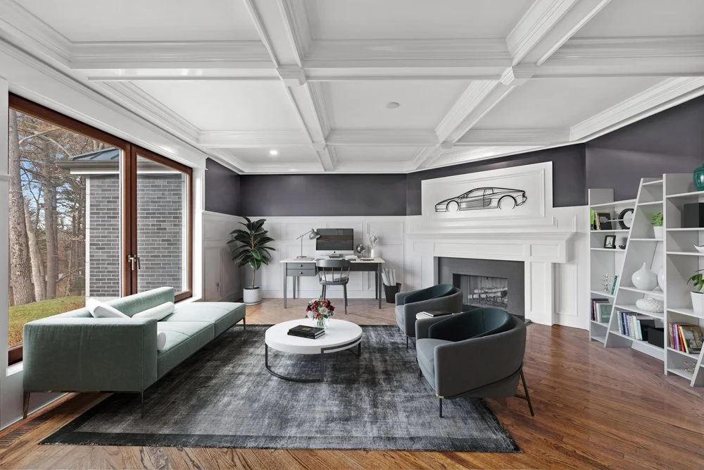 Stunning modern ranch style home perched on desirable Farm Street. Welcoming vaulted foyer opens to the stunning family room with vaulted ceiling, floor to ceiling fireplace and access to beautiful patio& mahogany decks. Amazing new kitchen high end stainless steel appliances, built in espresso machine, 11'x6' island, two sinks, and plenty of storage. Office/ den with coffered ceiling, wainscoting and fireplace. Dining room with tray ceiling. Craft studio and pantry off of kitchen. Laundry room with dog washing station. Primary bedroom with vaulted ceiling, walk in closet,slider to deck, large private bath with double vanity and spacious walk in shower. Junior suite with two rooms, balcony, bath and walk in closet. Playroom/ adult game room with balcony and wash sink. Lower level offers home theater, wine cellar, full bath storage and two car garage. Out building with stone fireplace is the perfect artist studio/ private office. Backyard is ideal for sports court or pool.